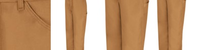 - Two slack-style front pockets, two back patch pockets with spade pocket flaps and snap closures, two patch leg pockets with inverted center pleat, one piece pocket flap with mitered corners, two snap closures