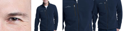 This super soft and warm jacket is as comfortable as it gets for fall hikes and everyday excursions. Contrast rolled top collar, zippered chest pocket, reverse coil contrast zippers, front zippered pockets with tricot lining, open cuffs and an open hem. Contrast Eddie Bauer logo embroidered on right chest. Made of 12-ounce, 100% polyester fleece which incorporates Low Impact Technology for enhanced softness and performance.