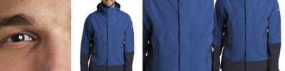 Two element-fighting WeatherEdge 5K/5K fabrics come together in this jacket for highly waterproof, breathable performance. Fully seam-sealed, this jacket also features an exclusive StormRepel ® durable water-repellent (DWR) coating for additional weather protection. Four-way stretch for easy mobility. Adjustable hood with locking drawcord, waterproof molded front zippered pockets, adjustable tab cuffs with hook and loop closures. Decoration access pocket. Adjustable locking drawcord hem. Contrast WeatherEdge logo heat transfer on left sleeve. Contrast Eddie Bauer logo heat transfer on right hem. Made of 94/6 poly/spandex and 92/8 poly/spandex.